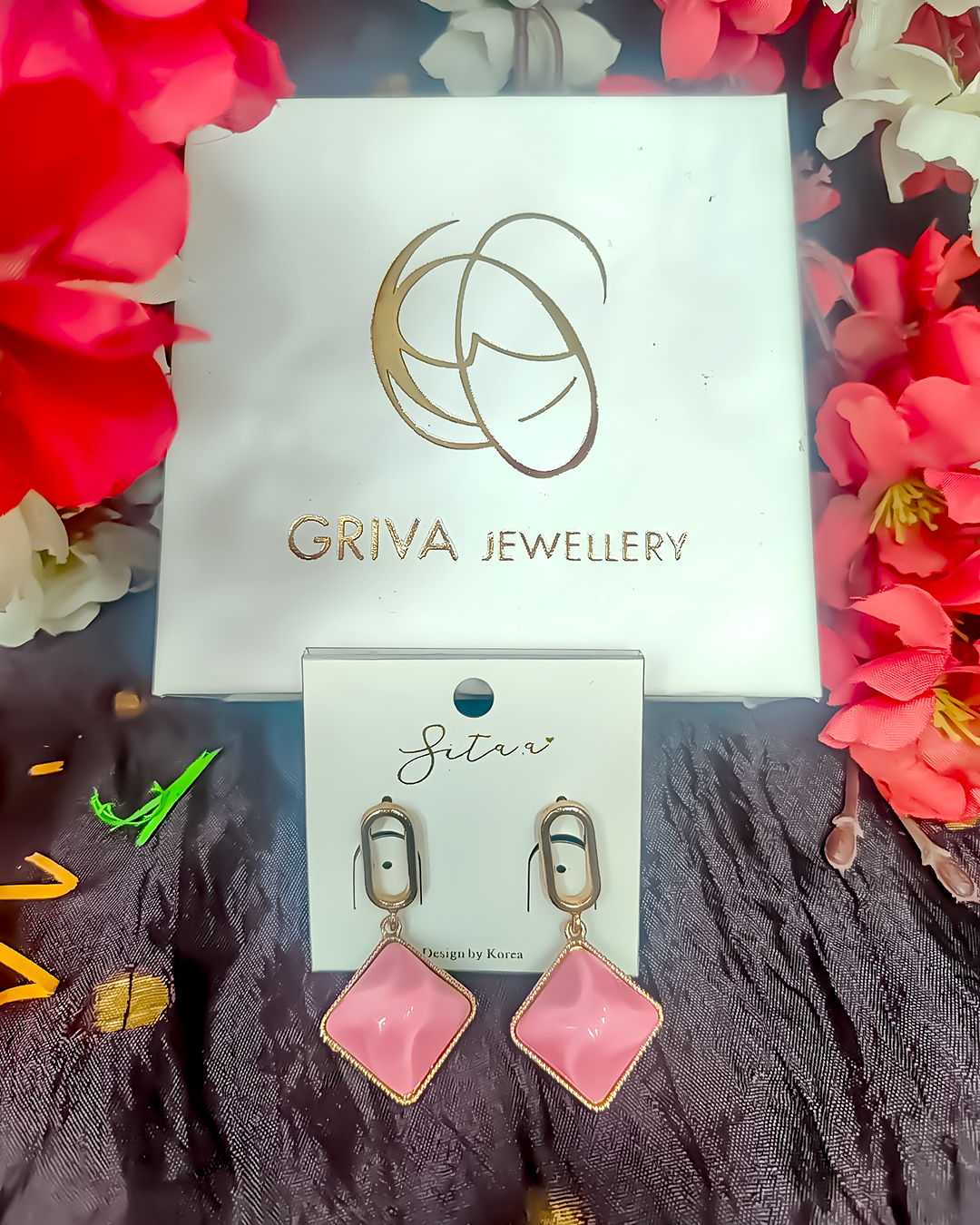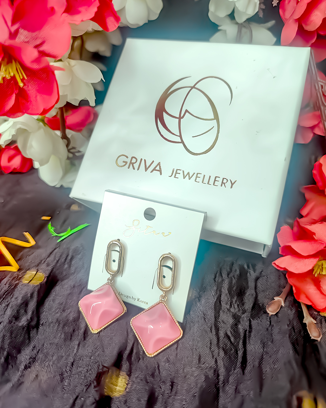 A modern and stylish pair of earrings featuring soft blush pink square charms suspended from sleek golden hooks — perfect for a touch of elegance with everyday wear.