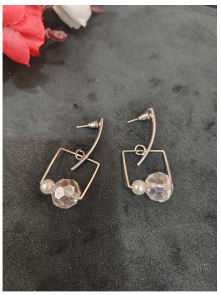 The product in the image appears to be a pair of modern, minimalist-style earrings.