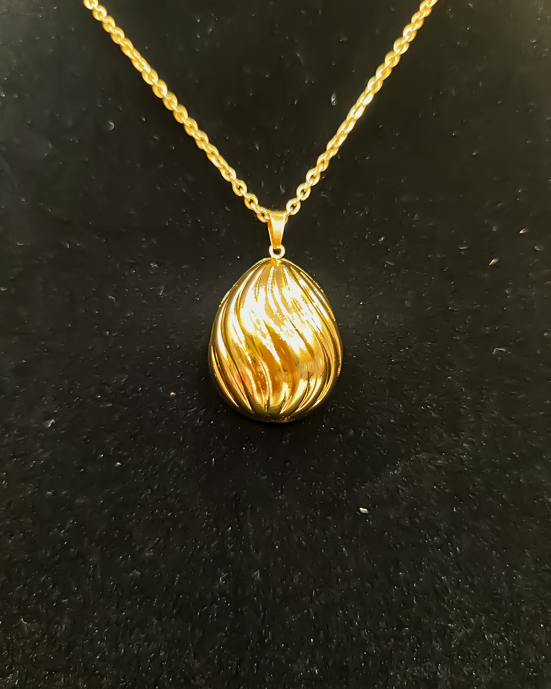 Grace meets glamour in this “Elegant Textured Gold-Plated Teardrop Pendant Set, a timeless expression of sophistication. The pendant features a beautifully contoured teardrop design, delicately textured to catch the light from every angle. Crafted with a lustrous gold-plated finish, it exudes refined charm and understated luxury.