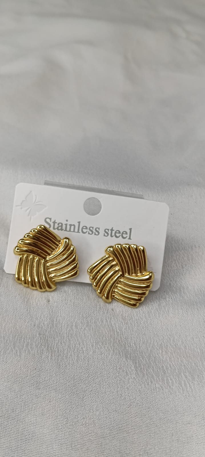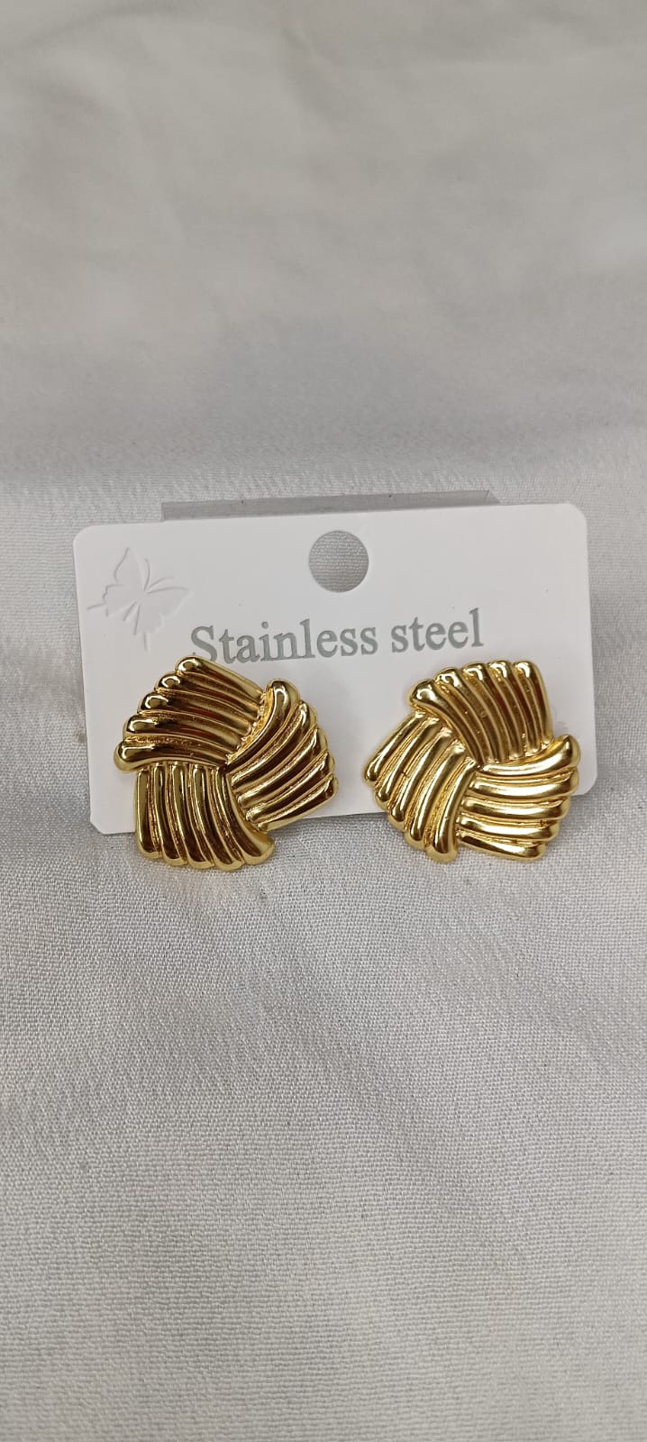 Stainless steel material. Rich gold-tone finish. Twisted knot / wave design. Smooth polished texture. Lightweight & durable. Perfect for everyday and party wear.