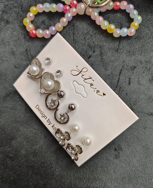 Featuring a mix of pearl-like accents and sleek spiral designs, this set offers versatile options for both casual and festive wear.