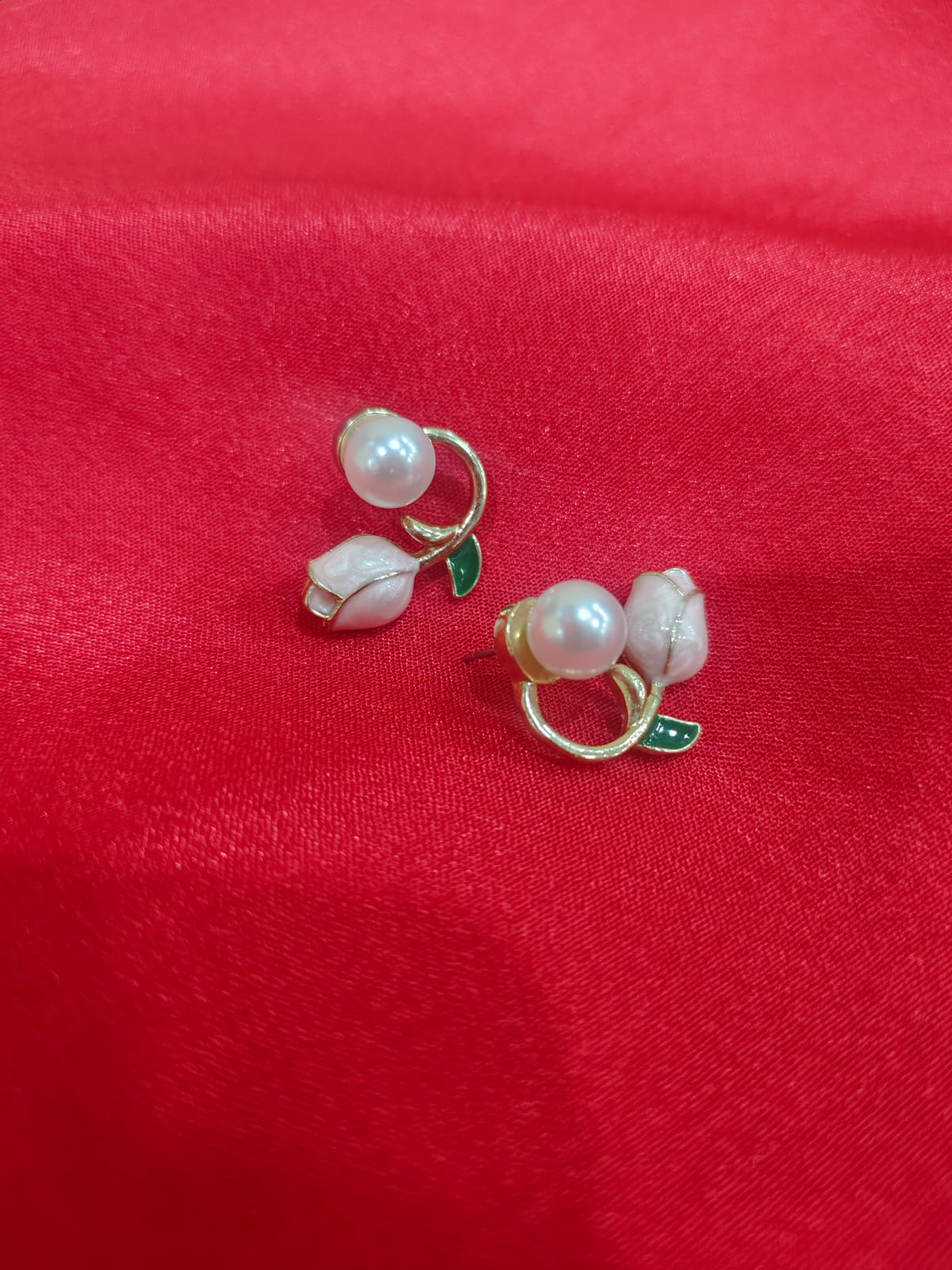 Elegant and timeless, these handcrafted “Pearl Blossom Ear Studs” feature delicate floral motifs with luminous pearls nestled in gold-tone settings. Perfect for everyday elegance or special occasions.