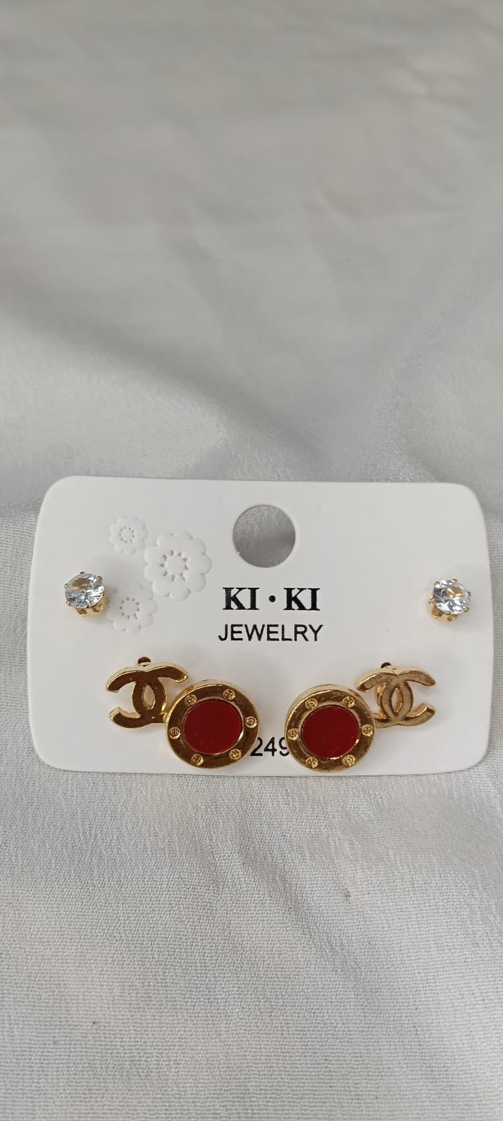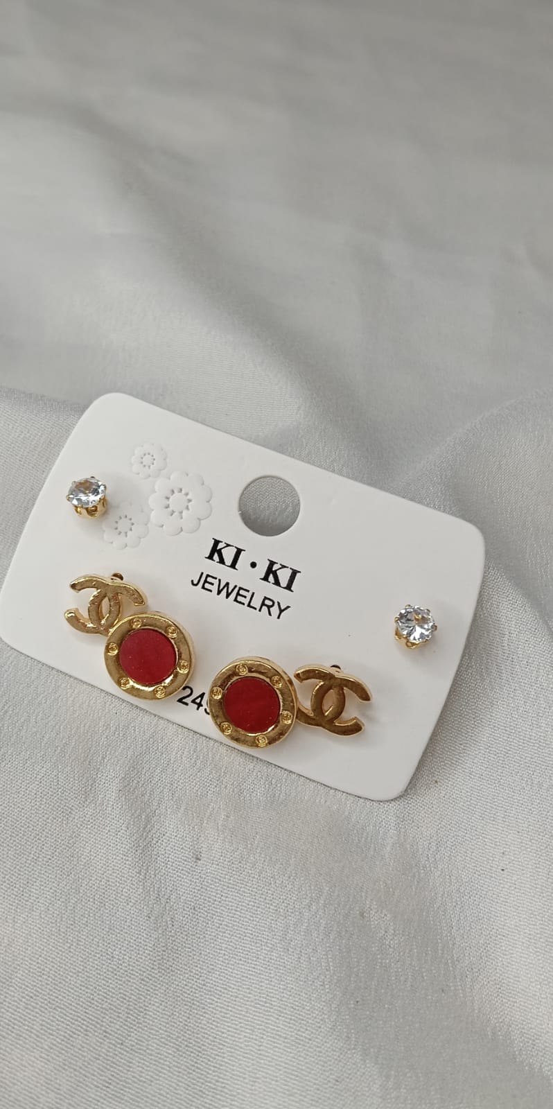 Elegant round red enamel center. Gold-tone circular frame with tiny stud detailing. Double-C style side design (inspired motif). Glossy, polished finish. Lightweight & skin-friendly. Perfect for party, festive & casual wear.