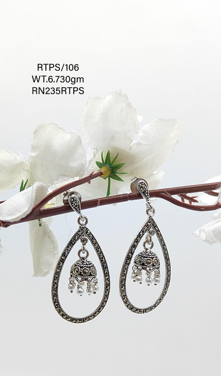 Elevate your style with these handcrafted sterling “Silver 92.5 Filigree Drop Earring”. Featuring intricate detailing and a graceful jhumka-style charm, these lightweight earrings blend tradition with elegance — perfect for both casual and festive occasions.