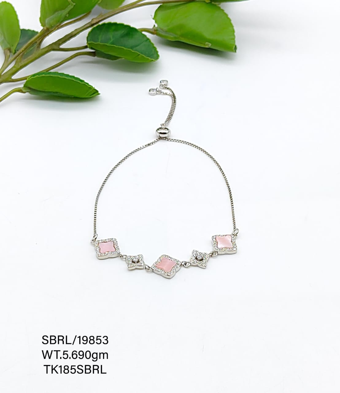 Delicate and graceful, this 92.5 silver hand bracelet features soft light pink stones that exude subtle charm—ideal for daily wear or special occasions.